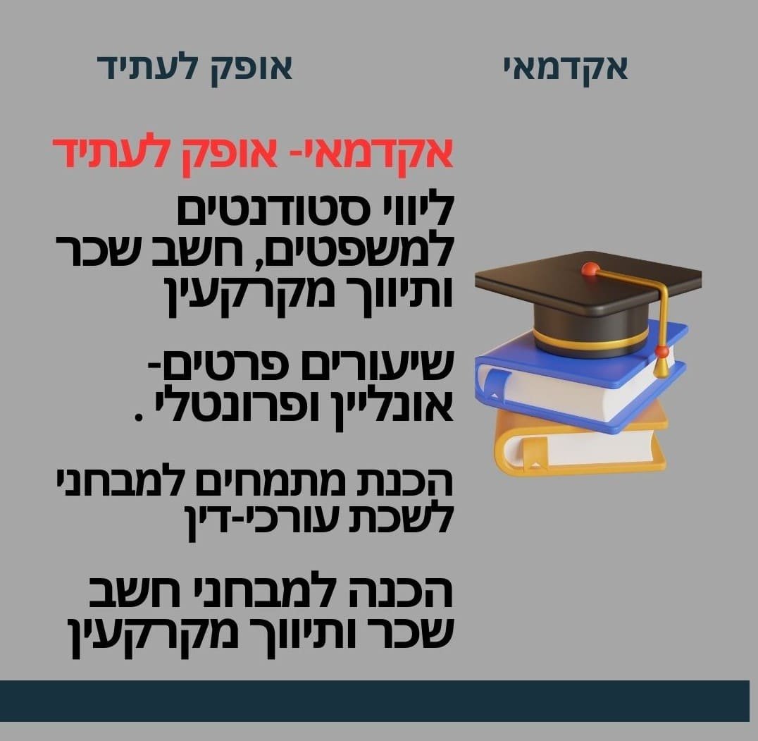 קהל היעד שלנו- עורכי דין, לקוחות פרטיים ועסקיים , סטודנטים למשפטים, חשב שכר ותיווך מקרקעין, מתמחים הניגשים לבחינות הלשכה , ותלמידים הניגשים לבחינות חשב שכר של לשכת רואי החשבון ו בחינות המתווכים של משרד המשפטים.