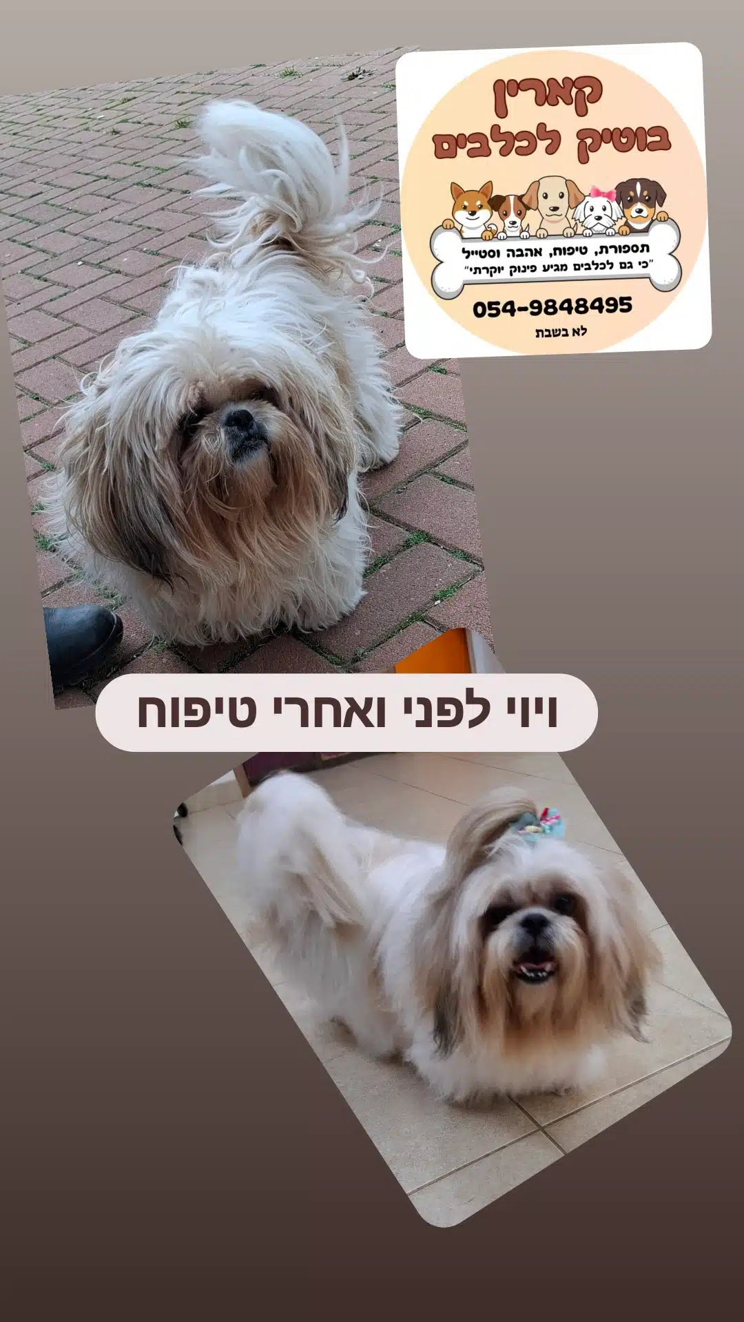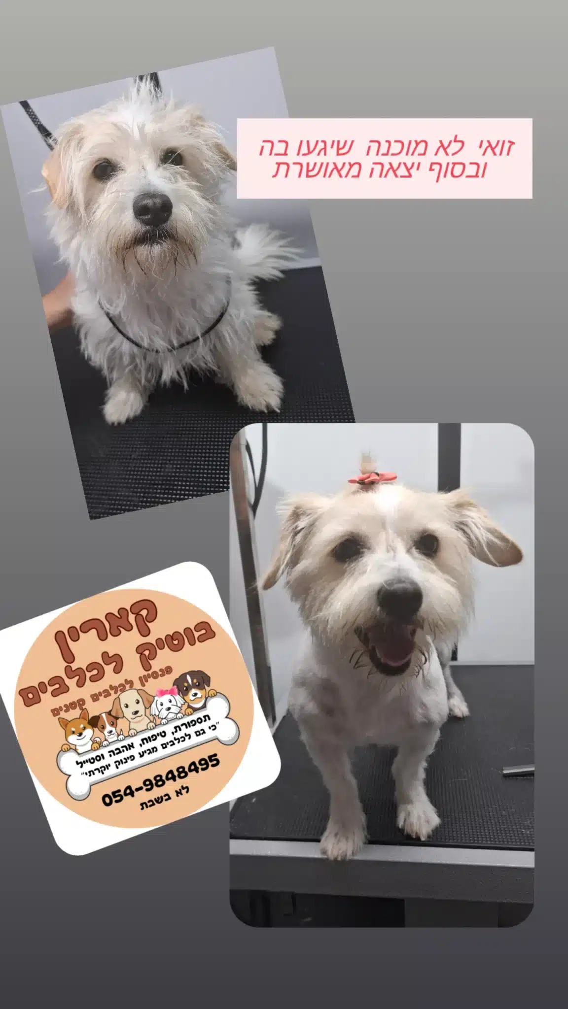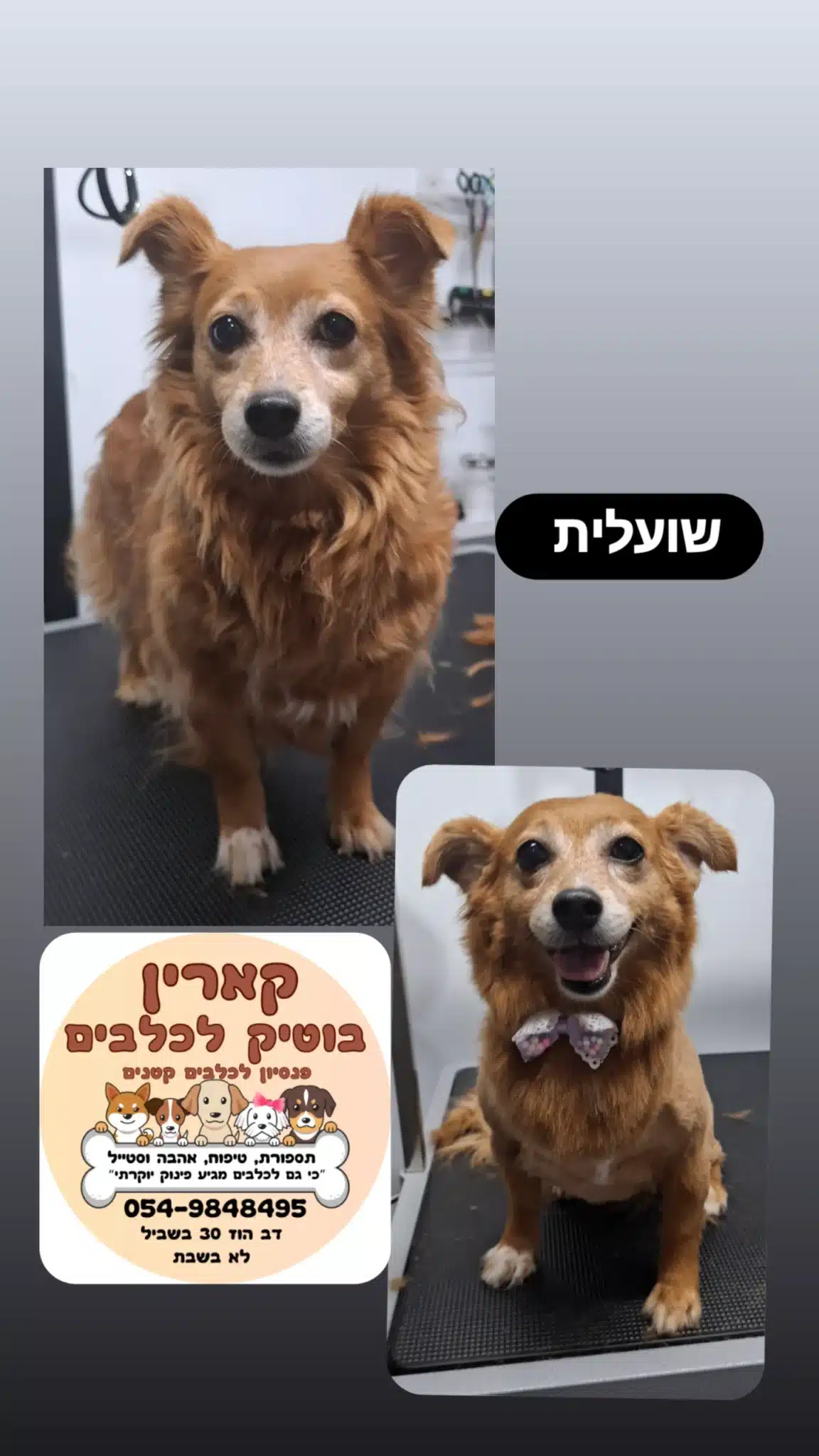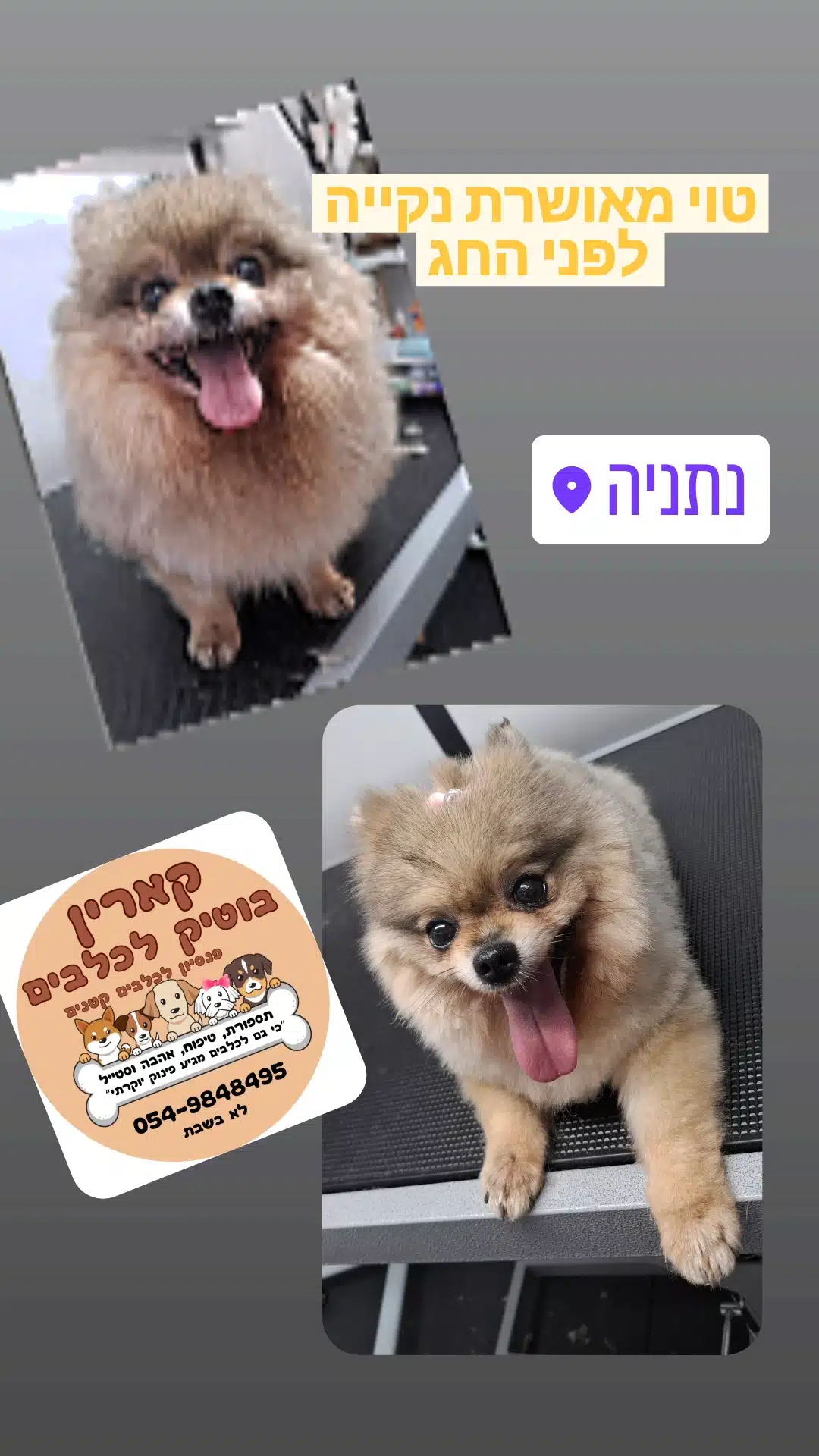 מספרת כלבים קטנים ובינונים בנתניה והסביבה, מספרה מקצועית לכל סוגי הכלבים הכוללת תסרוקות, תספורת גזע, דילול שיער, גזירת ציפורניים, וניקוי אוזניים, בהתאמה אישית לכל חיית מחמד. בנוסף, אנו מציעים פנסיון איכותי לכלבים קטנים אשר מספק סביבה בטוחה ומפנקת במהלך תקופות היעדרות של הבעלים. בחנותנו תוכלו למצוא מזון יבש, תזונה טבעית ואיכותית, קולרים, חומרים נגד פרעושים, אקססוריז, ומשחקים איכותים לכלבים וחתולים. כמו כן, המטרה להבטיח לחיות המחמד שלכם את הטיפול הטוב ביותר. שירות אדיב ומקצועי מובטח לכל לקוח ולקוחה. רמת שירות גבוהה, הרבה לקוחות ממליצים, מחירים משתלמים במיוחד, אמינות ומקצועיות, מוצרי טיפוח איכותיים. במקום יינתן פנסיון לכלבים קטנים בלבד 150 שח לילה. ליצירת קשר וקביעת תורים חייגו!