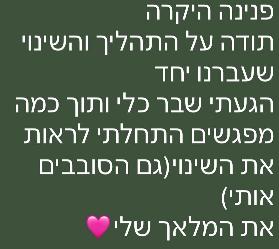 אני מאמינה שכל שינוי גדול מתחיל בהחלטה פנימית קטנה – והשלב הבא הוא ליווי נכון שלא נותן לוותר. עברתי תהליכים עמוקים עם עצמי, ולכן אני יודעת איך זה מרגיש להגיע לנקודת שבירה, ואיך נראה רגע שבו הכול מתחיל להיפתח מחדש.